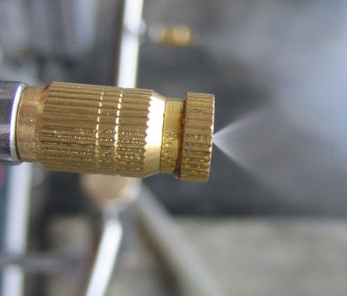 The nozzles spray water, and the higher the pressure, the finer the dispersion of the mist.